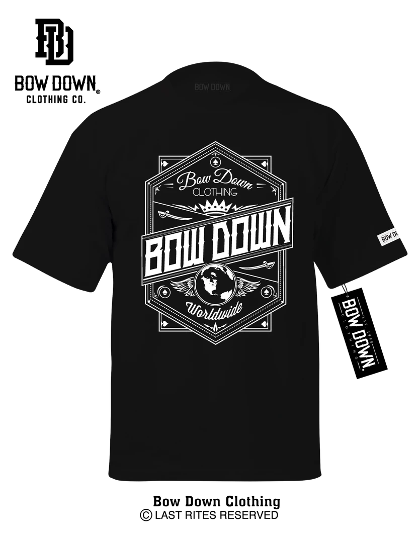 Exclusively by Bow Down Streetwear Clothing. High Density Print. 100% Hand Made in the USA. Preshrunked to minimize shrinkage. Custom neck labeling and sleeve clip label. Accept No Substitutes